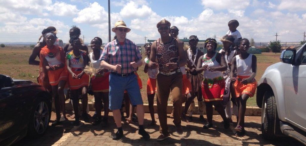Act Vice Chairman of NWUFPA, Papi Ratshomo with the Hit Parade doing an Environmental and Fire Awareness programme for children at Khutsong Township, with visiting Professor Sulevi from Helsinki University (who has now become an Associate of NWUFPA) 21 November 2015